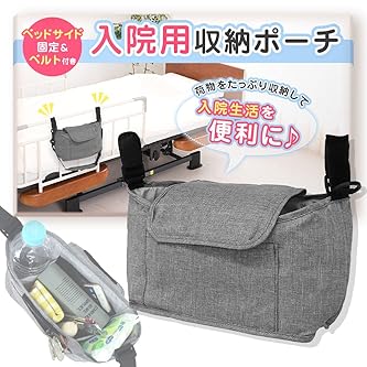 入院時動くのが大変なのに手の届く位置に物を置く場所がない時に便利なベッドサイド収納ポーチです。