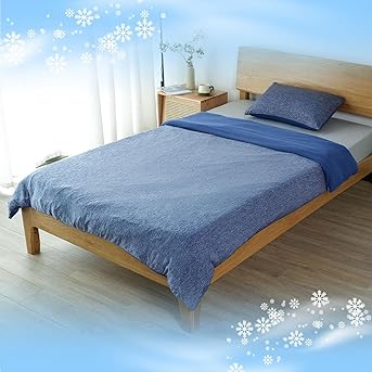 布団カバーの表面は接触冷感生地(Q-max 0.525)で、体の熱を素早く拡散し、触れた瞬間にひんやりするのが特徴です。