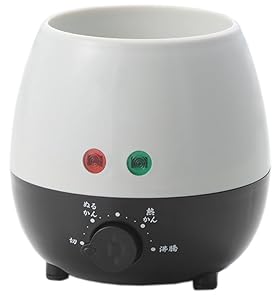 温度調節機能付の電気酒燗器です。容器にお酒を入れて、お好みの熱さに温めることができます。