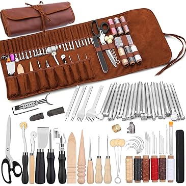 レザークラフト65点セットで、縫製革、キャンバス、布、紙または他のプロジェクトなどのカスタムレザー作品に最適です。