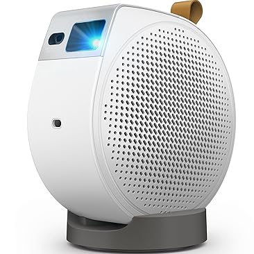 厚さわずか64 mmのこのスタイリッシュなプロジェクターは、本棚にもすっきり収納可能で、持ち運びも楽々です。