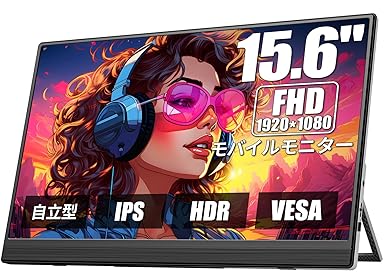 15.6インチ ポータブルモニターに、わずか600g・7mm超薄型、内蔵スピーカー&多角度スタンド付きと多機能なモバイルモニターです。