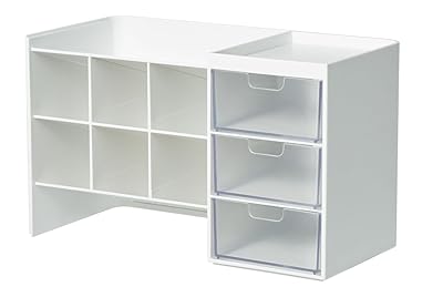 - ペンホルダー、引き出し、小物用仕切りを備えたデスク用収納ケース